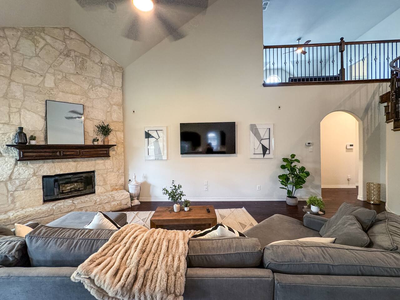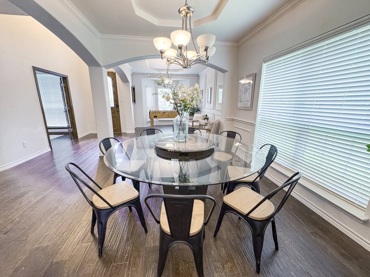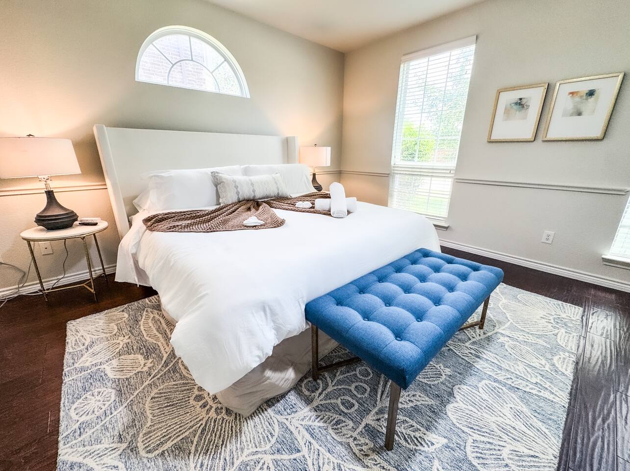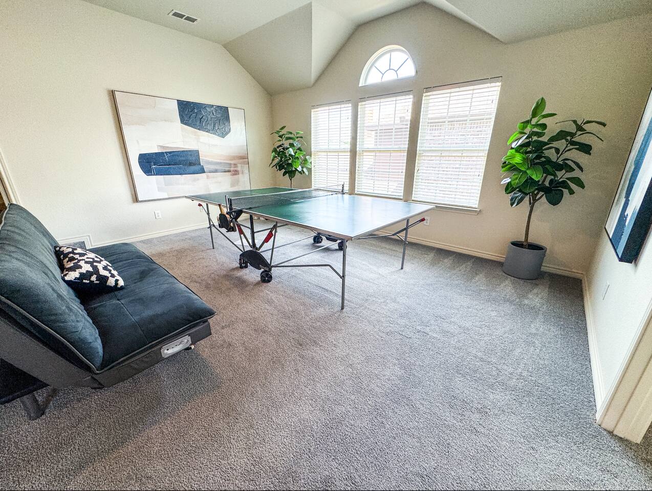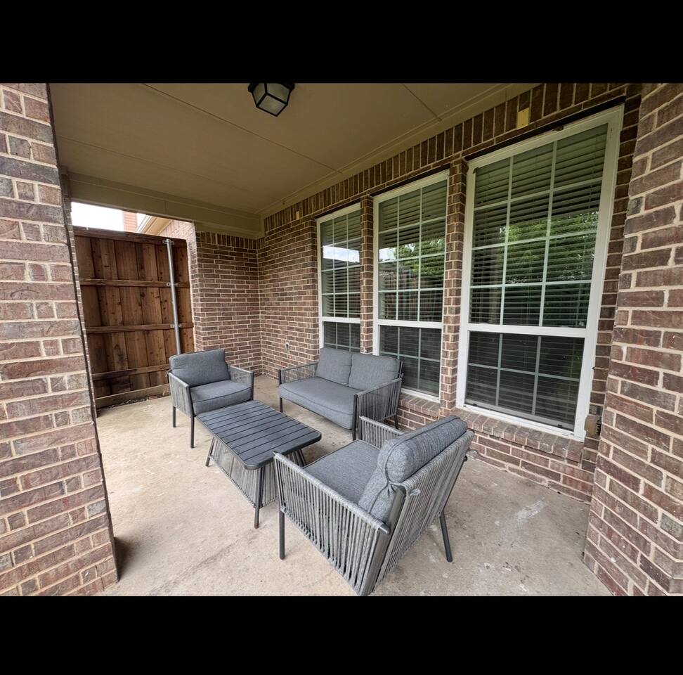 Welcome to this stunning 4,000-square-foot luxury home located in the heart of Frisco, Texas — the perfect blend of sophisticated style, spacious comfort, and upscale amenities. Designed to offer guests a memorable and relaxing stay, this expansive five-bedroom, four-bathroom property delivers an elevated hospitality experience, ideal for families, groups, and corporate travelers alike. Step into the modern open-concept living area, where a designer sectional sofa invites you to sink in and unwind. Soft accent pillows, a cozy throw, and tasteful, neutral tones complement the warm hardwood floors and striking modern art pieces, creating a calming yet elegant environment. The living area flows seamlessly into the kitchen and dining spaces, offering ample room for entertaining, socializing, or simply relaxing with loved ones. The fully stocked kitchen boasts stainless steel appliances, generous counter space, and a functional layout ready for anything from quick breakfasts to gourmet dinners. The adjacent dining room, with its chic decor and ample seating, makes shared meals a joy. This home is thoughtfully outfitted for entertainment and relaxation with a dedicated game room featuring fun for all ages, as well as a private home theater — perfect for movie nights or binge-watching your favorite series in style. Each of the five spacious bedrooms is designed with your comfort in mind, featuring plush bedding, quality linens, and ample storage space. The four full bathrooms are stocked with fresh towels and essentials, offering a spa-like experience after a day of exploring the area. Throughout the property, you’ll find stylish details including contemporary lighting, large windows that let in abundant natural light, and carefully curated decor that ties everything together in a cohesive, modern-luxury style. Practical amenities abound as well, with a full-size washer and dryer, high-speed Wi-Fi, smart TVs, and climate control to ensure a carefree, comfortable stay. Outside, enjoy the spacious backyard and patio area — ideal for morning coffee or evening relaxation. Situated in one of Frisco’s most desirable neighborhoods, this home is minutes from top attractions including The Star, headquarters of the Dallas Cowboys; Legacy West, known for its premier shopping and dining; Stonebriar Centre; and the PGA Frisco development, a must-visit for golf enthusiasts. You’ll also be close to Frisco Commons Park, the National Videogame Museum, and a wide variety of local restaurants, coffee shops, and family-friendly activities. Whether you’re visiting for a family getaway, a reunion, a business trip, or a weekend of fun, this modern Frisco retreat has everything you need to feel right at home while enjoying the ultimate in luxury and convenience. Book your stay today and discover why Frisco is one of Texas’s most vibrant and sought-after destinations — with the perfect home base to match.
