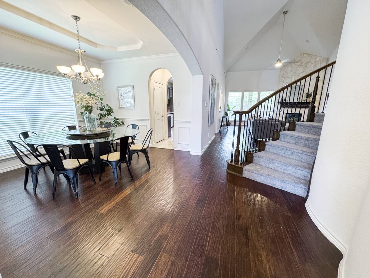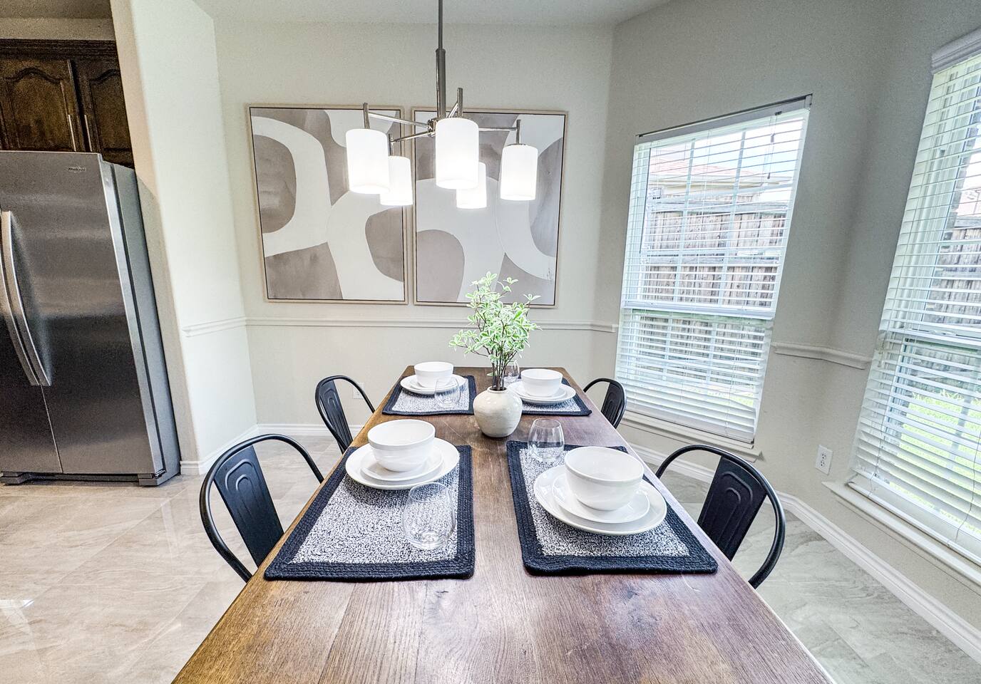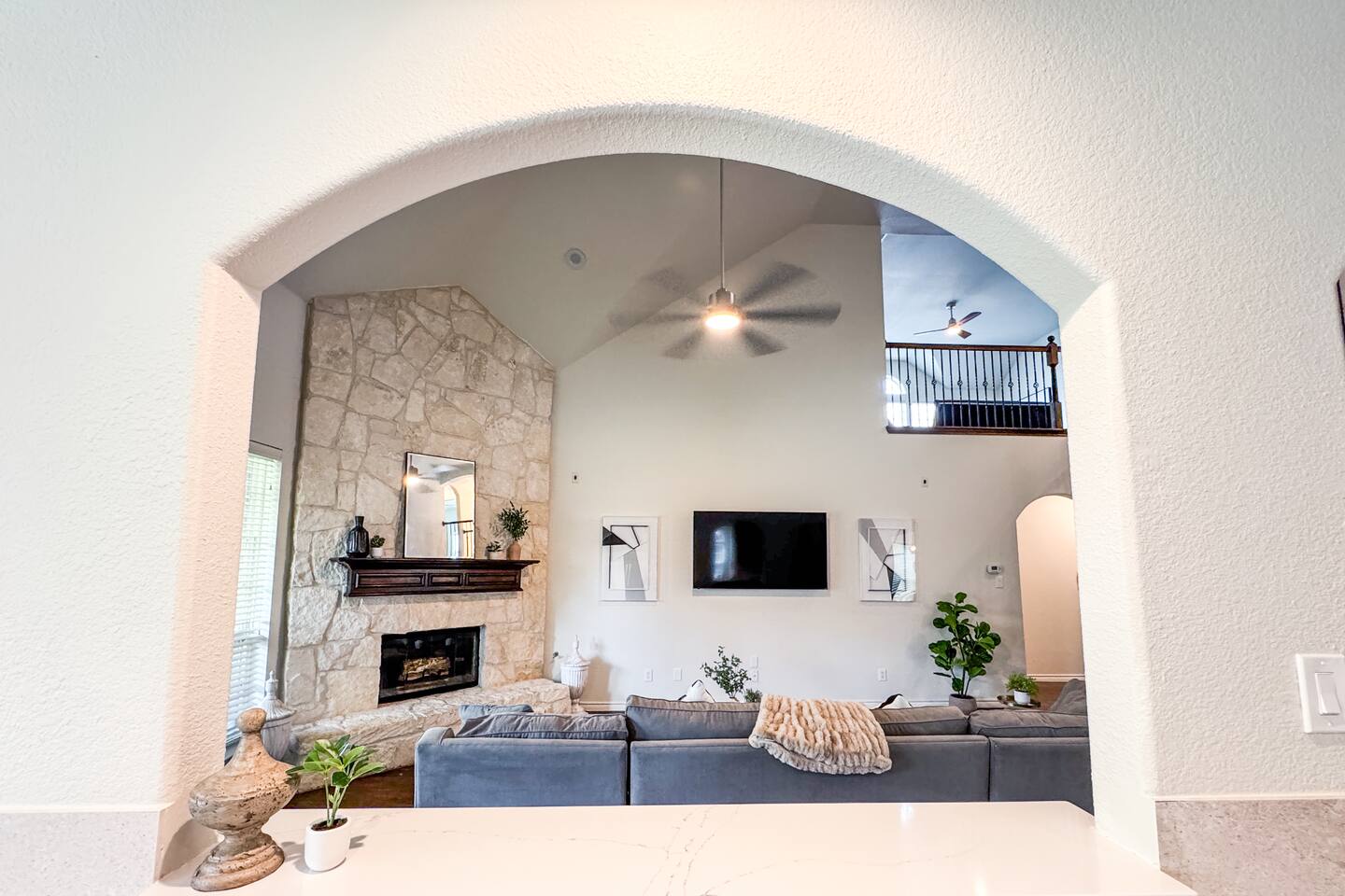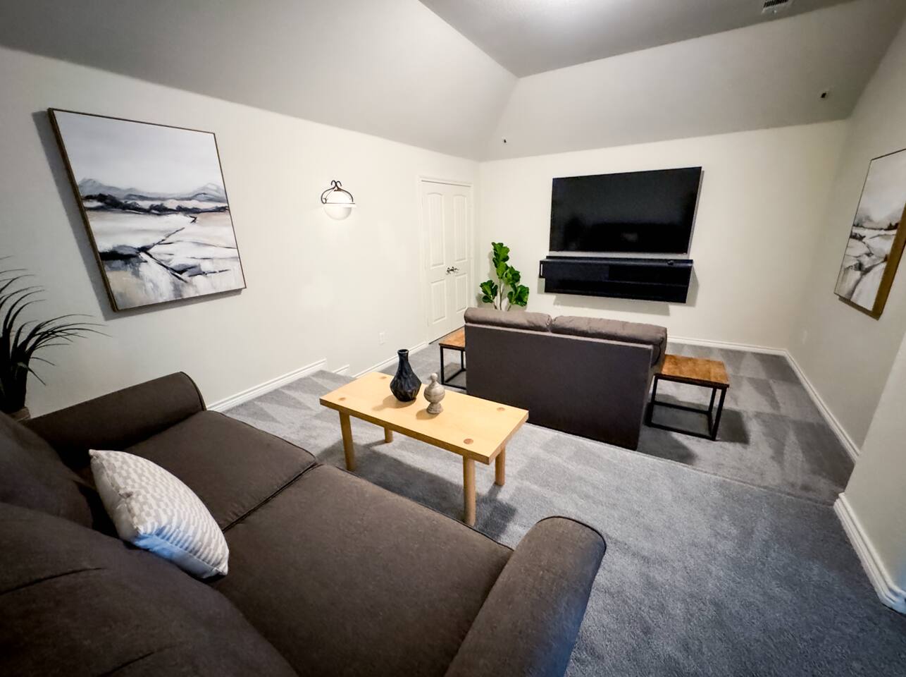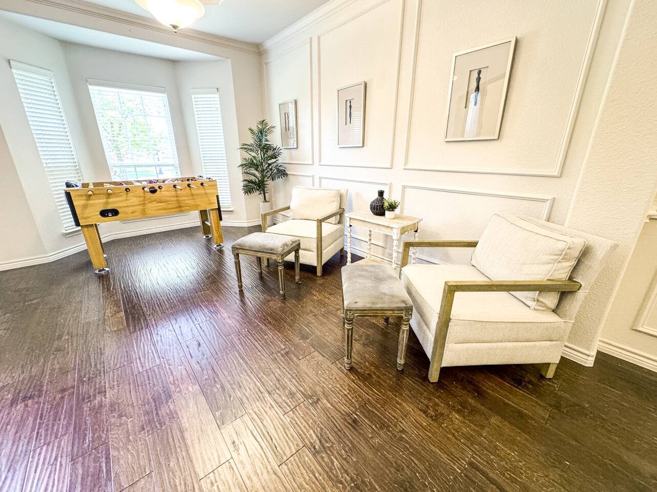 Welcome to this stunning 4,000-square-foot luxury home located in the heart of Frisco, Texas — the perfect blend of sophisticated style, spacious comfort, and upscale amenities. Designed to offer guests a memorable and relaxing stay, this expansive five-bedroom, four-bathroom property delivers an elevated hospitality experience, ideal for families, groups, and corporate travelers alike. Step into the modern open-concept living area, where a designer sectional sofa invites you to sink in and unwind. Soft accent pillows, a cozy throw, and tasteful, neutral tones complement the warm hardwood floors and striking modern art pieces, creating a calming yet elegant environment. The living area flows seamlessly into the kitchen and dining spaces, offering ample room for entertaining, socializing, or simply relaxing with loved ones. The fully stocked kitchen boasts stainless steel appliances, generous counter space, and a functional layout ready for anything from quick breakfasts to gourmet dinners. The adjacent dining room, with its chic decor and ample seating, makes shared meals a joy. This home is thoughtfully outfitted for entertainment and relaxation with a dedicated game room featuring fun for all ages, as well as a private home theater — perfect for movie nights or binge-watching your favorite series in style. Each of the five spacious bedrooms is designed with your comfort in mind, featuring plush bedding, quality linens, and ample storage space. The four full bathrooms are stocked with fresh towels and essentials, offering a spa-like experience after a day of exploring the area. Throughout the property, you’ll find stylish details including contemporary lighting, large windows that let in abundant natural light, and carefully curated decor that ties everything together in a cohesive, modern-luxury style. Practical amenities abound as well, with a full-size washer and dryer, high-speed Wi-Fi, smart TVs, and climate control to ensure a carefree, comfortable stay. Outside, enjoy the spacious backyard and patio area — ideal for morning coffee or evening relaxation. Situated in one of Frisco’s most desirable neighborhoods, this home is minutes from top attractions including The Star, headquarters of the Dallas Cowboys; Legacy West, known for its premier shopping and dining; Stonebriar Centre; and the PGA Frisco development, a must-visit for golf enthusiasts. You’ll also be close to Frisco Commons Park, the National Videogame Museum, and a wide variety of local restaurants, coffee shops, and family-friendly activities. Whether you’re visiting for a family getaway, a reunion, a business trip, or a weekend of fun, this modern Frisco retreat has everything you need to feel right at home while enjoying the ultimate in luxury and convenience. Book your stay today and discover why Frisco is one of Texas’s most vibrant and sought-after destinations — with the perfect home base to match.