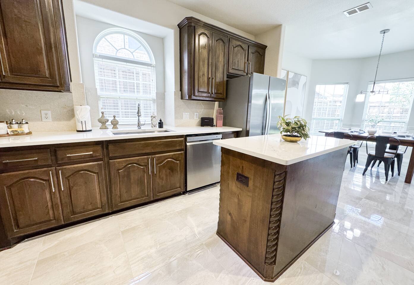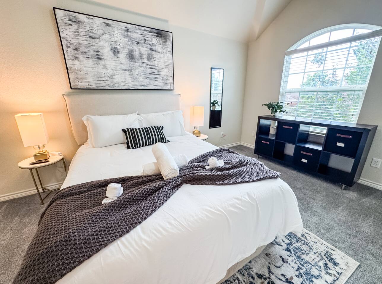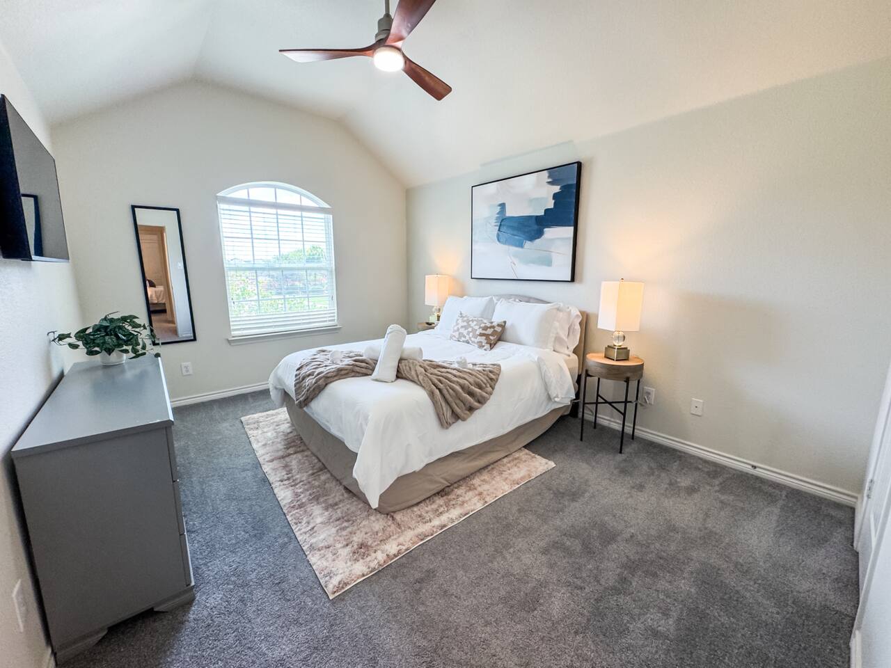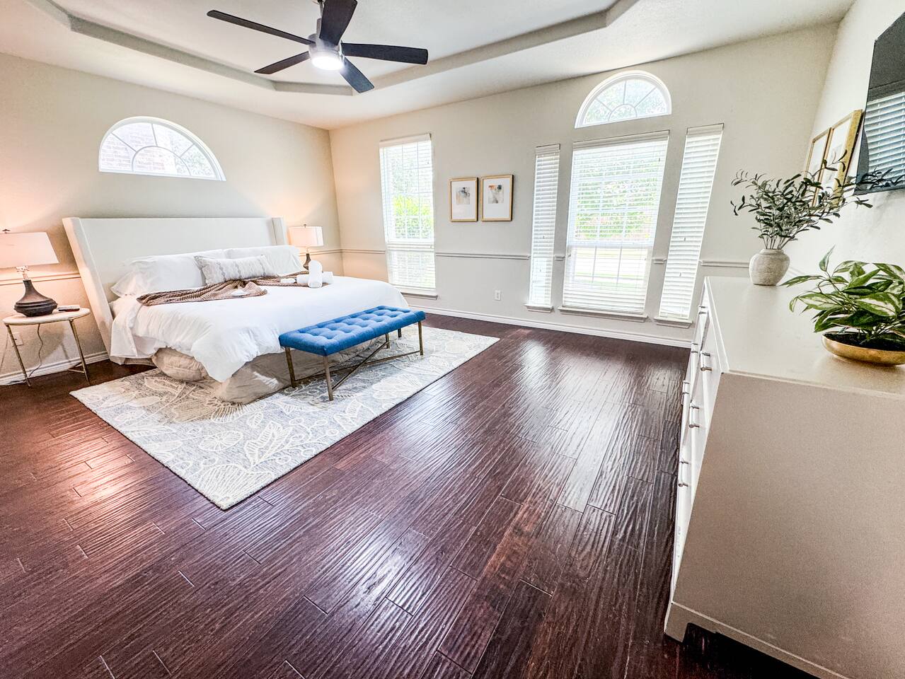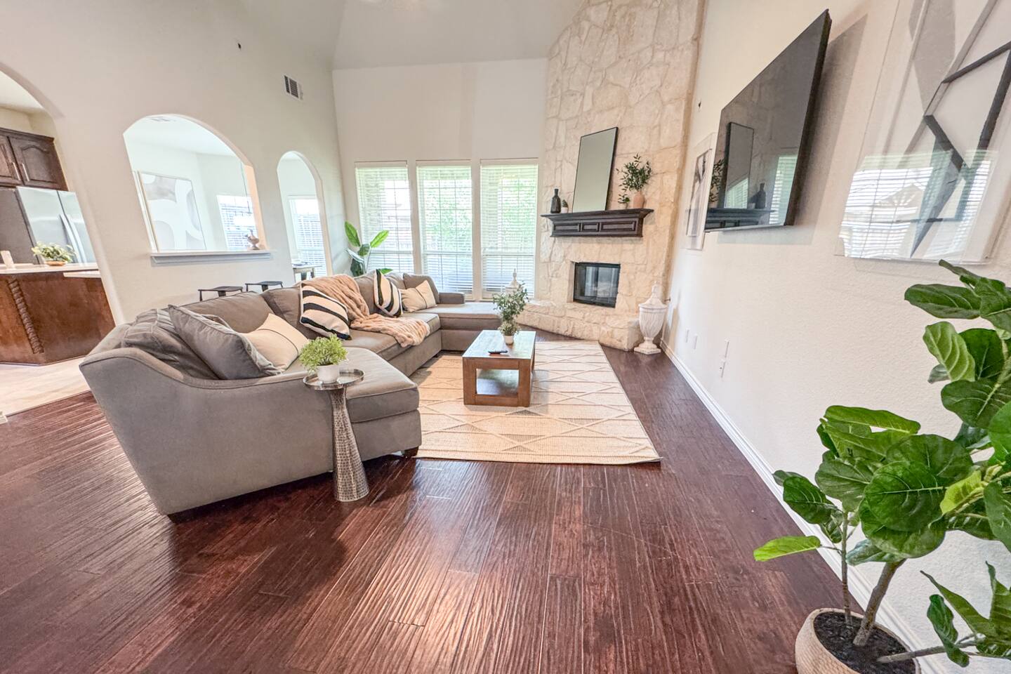 Welcome to this stunning 4,000-square-foot luxury home located in the heart of Frisco, Texas — the perfect blend of sophisticated style, spacious comfort, and upscale amenities. Designed to offer guests a memorable and relaxing stay, this expansive five-bedroom, four-bathroom property delivers an elevated hospitality experience, ideal for families, groups, and corporate travelers alike. Step into the modern open-concept living area, where a designer sectional sofa invites you to sink in and unwind. Soft accent pillows, a cozy throw, and tasteful, neutral tones complement the warm hardwood floors and striking modern art pieces, creating a calming yet elegant environment. The living area flows seamlessly into the kitchen and dining spaces, offering ample room for entertaining, socializing, or simply relaxing with loved ones. The fully stocked kitchen boasts stainless steel appliances, generous counter space, and a functional layout ready for anything from quick breakfasts to gourmet dinners. The adjacent dining room, with its chic decor and ample seating, makes shared meals a joy. This home is thoughtfully outfitted for entertainment and relaxation with a dedicated game room featuring fun for all ages, as well as a private home theater — perfect for movie nights or binge-watching your favorite series in style. Each of the five spacious bedrooms is designed with your comfort in mind, featuring plush bedding, quality linens, and ample storage space. The four full bathrooms are stocked with fresh towels and essentials, offering a spa-like experience after a day of exploring the area. Throughout the property, you’ll find stylish details including contemporary lighting, large windows that let in abundant natural light, and carefully curated decor that ties everything together in a cohesive, modern-luxury style. Practical amenities abound as well, with a full-size washer and dryer, high-speed Wi-Fi, smart TVs, and climate control to ensure a carefree, comfortable stay. Outside, enjoy the spacious backyard and patio area — ideal for morning coffee or evening relaxation. Situated in one of Frisco’s most desirable neighborhoods, this home is minutes from top attractions including The Star, headquarters of the Dallas Cowboys; Legacy West, known for its premier shopping and dining; Stonebriar Centre; and the PGA Frisco development, a must-visit for golf enthusiasts. You’ll also be close to Frisco Commons Park, the National Videogame Museum, and a wide variety of local restaurants, coffee shops, and family-friendly activities. Whether you’re visiting for a family getaway, a reunion, a business trip, or a weekend of fun, this modern Frisco retreat has everything you need to feel right at home while enjoying the ultimate in luxury and convenience. Book your stay today and discover why Frisco is one of Texas’s most vibrant and sought-after destinations — with the perfect home base to match.