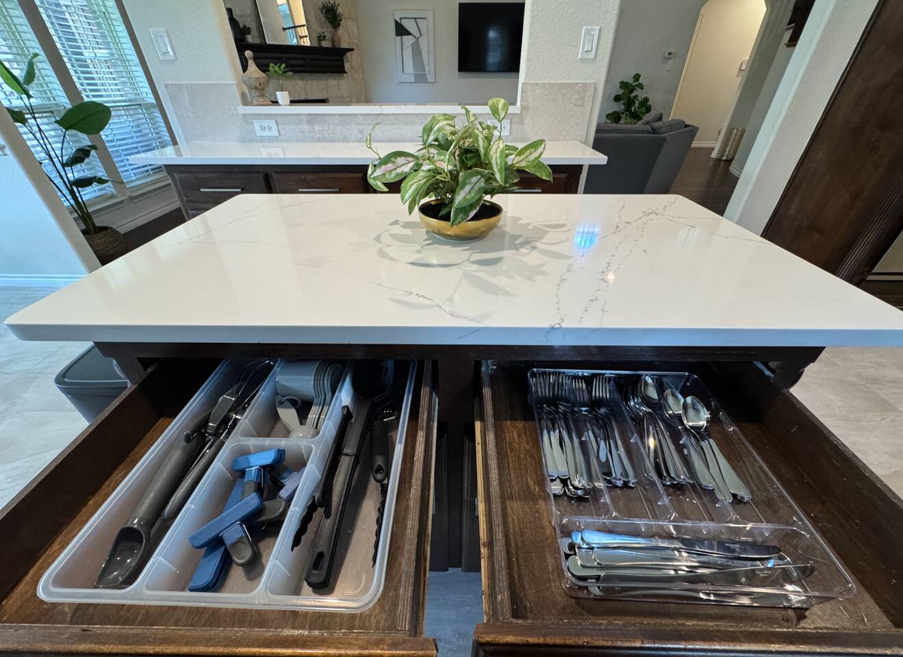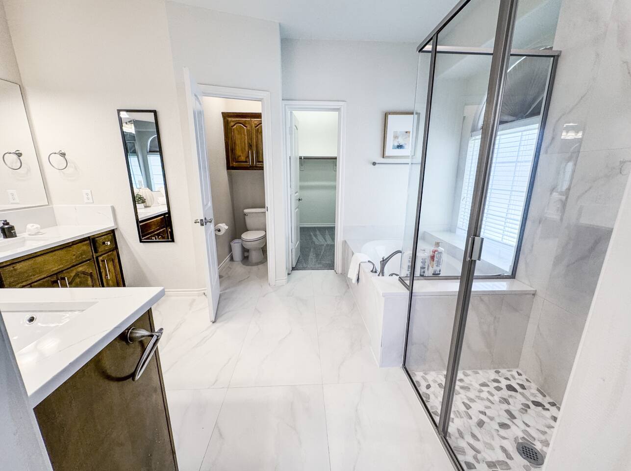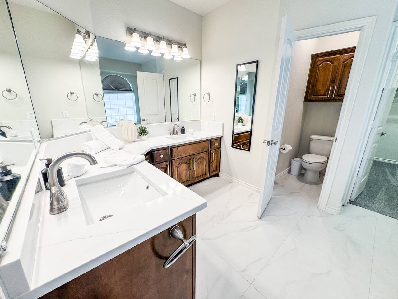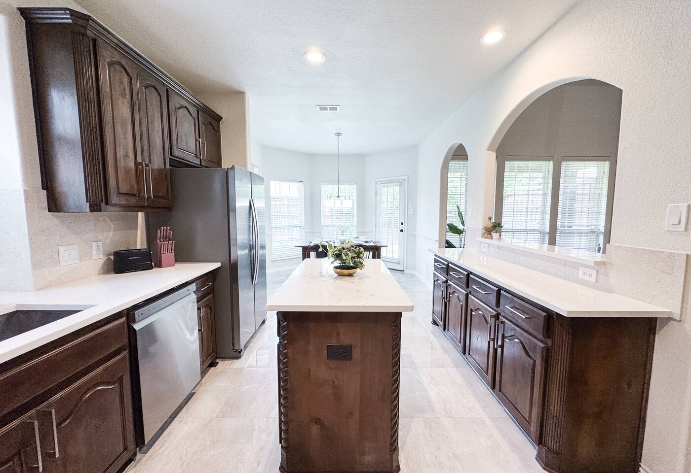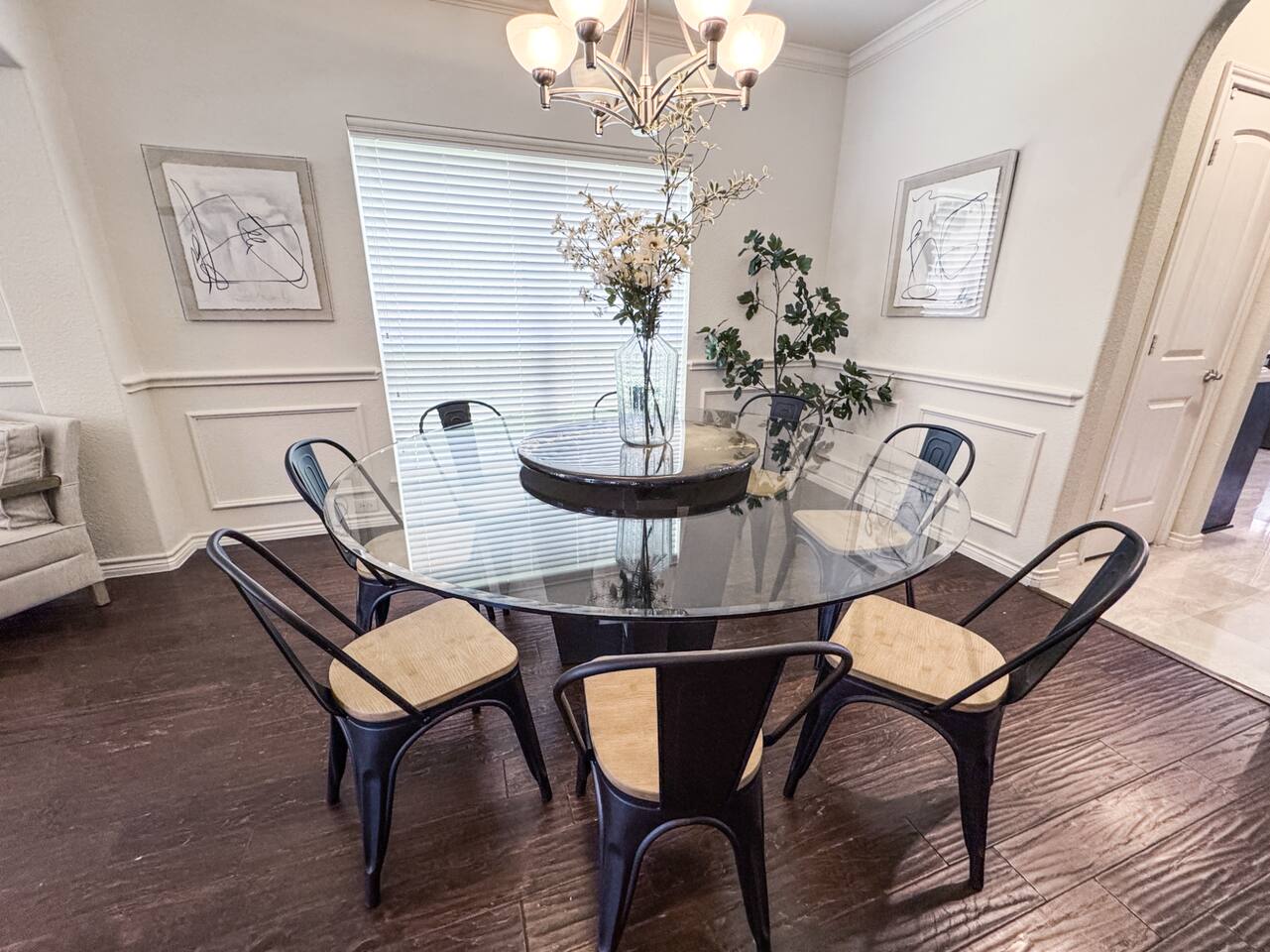 Welcome to this stunning 4,000-square-foot luxury home located in the heart of Frisco, Texas — the perfect blend of sophisticated style, spacious comfort, and upscale amenities. Designed to offer guests a memorable and relaxing stay, this expansive five-bedroom, four-bathroom property delivers an elevated hospitality experience, ideal for families, groups, and corporate travelers alike. Step into the modern open-concept living area, where a designer sectional sofa invites you to sink in and unwind. Soft accent pillows, a cozy throw, and tasteful, neutral tones complement the warm hardwood floors and striking modern art pieces, creating a calming yet elegant environment. The living area flows seamlessly into the kitchen and dining spaces, offering ample room for entertaining, socializing, or simply relaxing with loved ones. The fully stocked kitchen boasts stainless steel appliances, generous counter space, and a functional layout ready for anything from quick breakfasts to gourmet dinners. The adjacent dining room, with its chic decor and ample seating, makes shared meals a joy. This home is thoughtfully outfitted for entertainment and relaxation with a dedicated game room featuring fun for all ages, as well as a private home theater — perfect for movie nights or binge-watching your favorite series in style. Each of the five spacious bedrooms is designed with your comfort in mind, featuring plush bedding, quality linens, and ample storage space. The four full bathrooms are stocked with fresh towels and essentials, offering a spa-like experience after a day of exploring the area. Throughout the property, you’ll find stylish details including contemporary lighting, large windows that let in abundant natural light, and carefully curated decor that ties everything together in a cohesive, modern-luxury style. Practical amenities abound as well, with a full-size washer and dryer, high-speed Wi-Fi, smart TVs, and climate control to ensure a carefree, comfortable stay. Outside, enjoy the spacious backyard and patio area — ideal for morning coffee or evening relaxation. Situated in one of Frisco’s most desirable neighborhoods, this home is minutes from top attractions including The Star, headquarters of the Dallas Cowboys; Legacy West, known for its premier shopping and dining; Stonebriar Centre; and the PGA Frisco development, a must-visit for golf enthusiasts. You’ll also be close to Frisco Commons Park, the National Videogame Museum, and a wide variety of local restaurants, coffee shops, and family-friendly activities. Whether you’re visiting for a family getaway, a reunion, a business trip, or a weekend of fun, this modern Frisco retreat has everything you need to feel right at home while enjoying the ultimate in luxury and convenience. Book your stay today and discover why Frisco is one of Texas’s most vibrant and sought-after destinations — with the perfect home base to match.