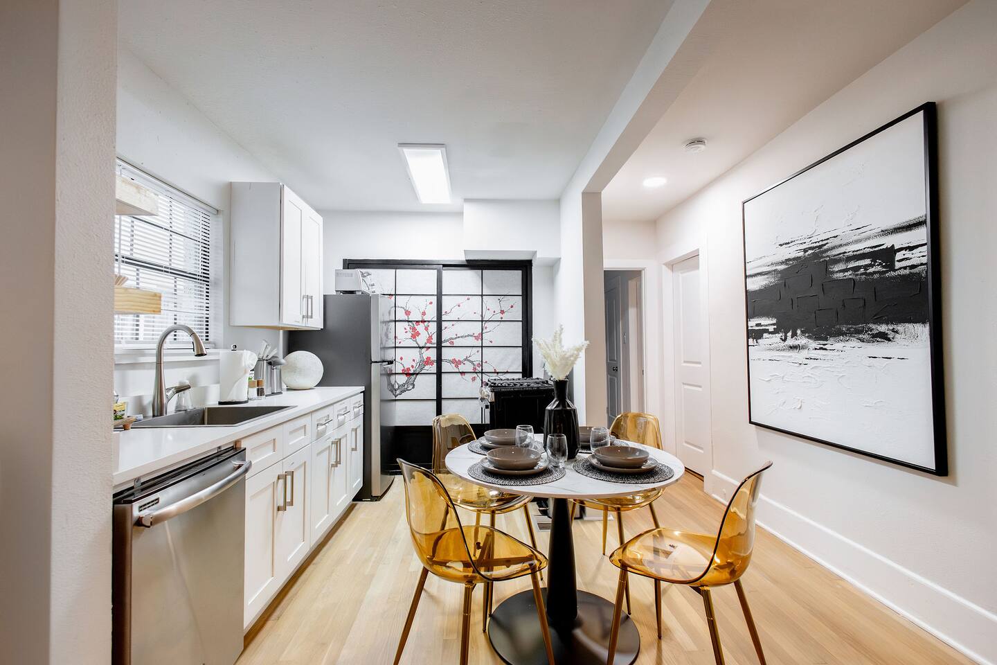 ** Prime Location: Nestled in the trendy Oak Lawn neighborhood, you're just steps away from the best of Dallas. Explore eclectic boutiques, savor diverse cuisines, and discover the dynamic culture that surrounds you. **Chic Living Space: Step into a thoughtfully designed retreat, where modern aesthetics meet cozy comfort. The living area is perfect for unwinding after a day of exploration, and the bedrooms promise restful nights with a plush King or Queen bed awaiting you. **Fully Equipped Kitchen: Channel your inner chef in the sleek, fully equipped kitchen. Whether you're whipping up a quick breakfast or preparing a gourmet dinner, everything you need is at your fingertips. **Luxurious Bathroom: Fresh linens, complimentary natural body wash, shampoo, and conditioner is ready for you **Convenient Parking: Worried about parking? Don't be! Our convenient parking facilities ensure a hassle-free experience for guests with vehicles. ** High-Speed Internet: Stay connected with high-speed internet, perfect for both work and leisure.